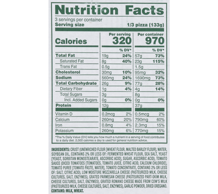 Ingredients: Crust (Unenriched Flour [Wheat Flour, Malted Barley Flour], Water, Soybean Oil, Contains 2% Or