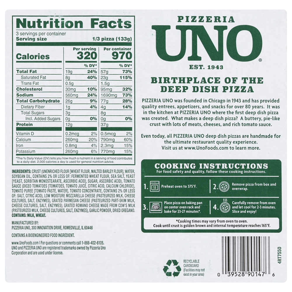 Uno 7″ Chicago Style Deep Dish Cheese Pizza Ingredients