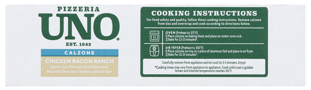 Oven Cooking Instructions for Uno Chicken Bacon Ranch Calzone